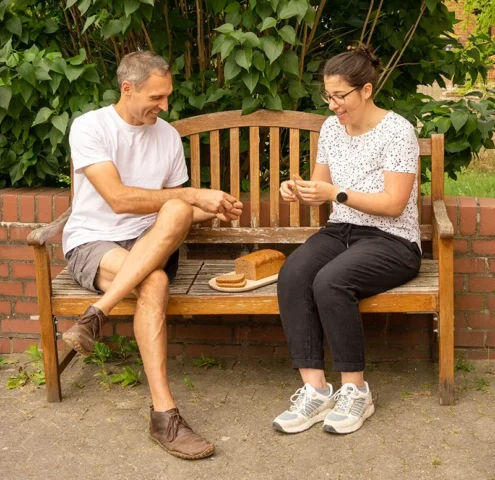Du hast ein Rezept für ein neues Dinkelkeimbrot entwickelt, das wir ab Anfang August in unserer Bäckerei, auf den Märkten und in Bioläden, die wir beliefern, verkaufen werden. Das Brot besteht nur aus Getreide, Wasser und Salz sowie zu 100% aus Dinkelvollkorn. Was, würdest du also sagen, ist das Besondere an diesem Brot?